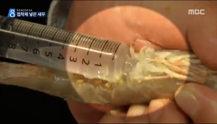 중국에서 새우의 중량을 늘려팔기 위해서 아교, 접착제 등을 주입하여 판매했다고 하는데요.