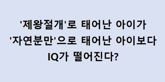 전에 방송했던 이상한 나라의 며느리 프로그램에서, 손주의 IQ가 떨어질까봐 제왕절개 반대를 한 할아버지가 나왔던 적이 있었지요.