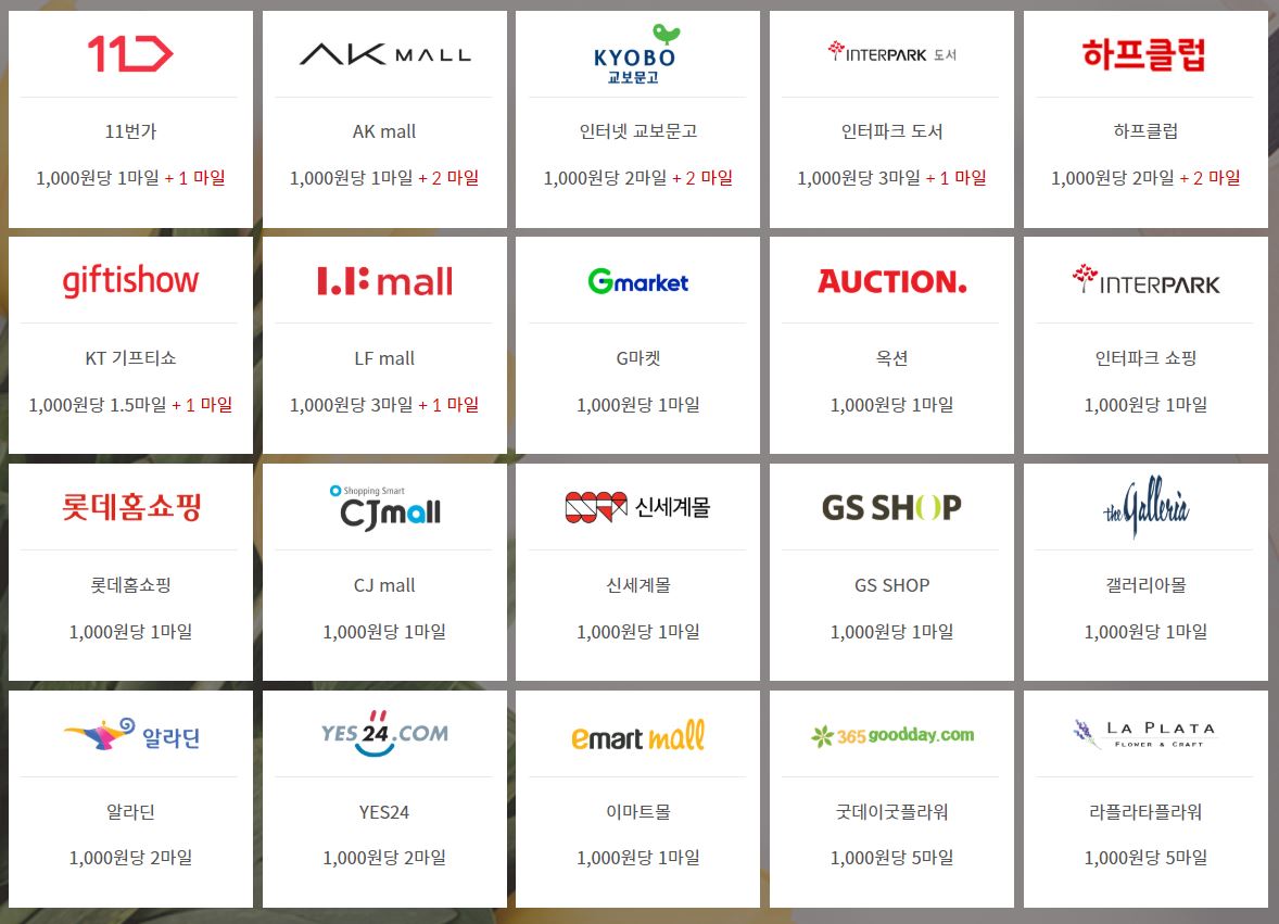 주로 이용하는 경유하는 마일리지 적립 사이트는 '샵앤마일즈' 이다. 지금은 '마일리지 적립몰' 로 이름이 바뀌었다.