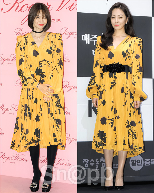 상큼한 분위기가 닮은 두 배우가 똑같이 상큼한 스타일의 원피스를 선택했네요.
