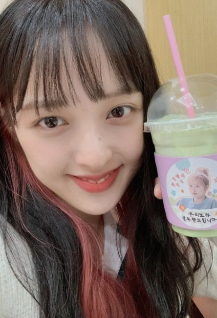 김보라는 사랑스러운 핑크로 시크릿투톤을 했어요.