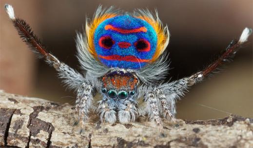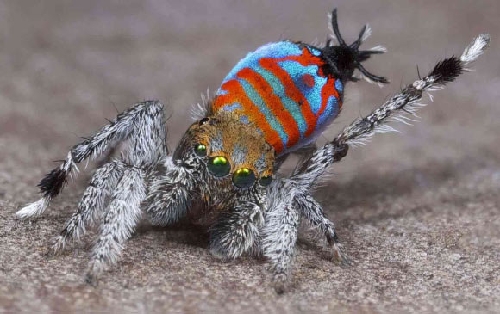 공작거미는 점프해서 뛰어다니며 먹이를 사냥하는 '깡충거밋과'에 속한다고 합니다.